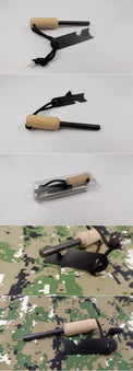 - All-in-One Firestarting Kit – Includes magnesium ferro rod, wood handle, and multi-tool striker.