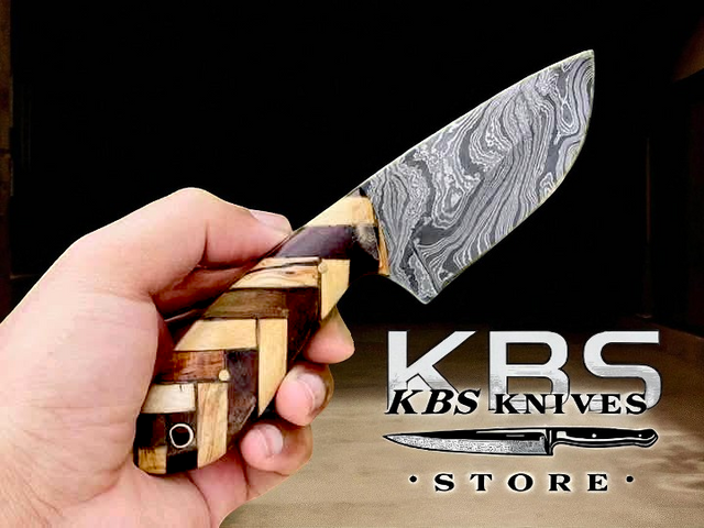 Handmade Damascus Skinning Knife – 6.5" Raindrop Blade