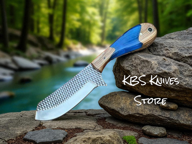 Premium Custom Handmade Ranch Knife – D2 Powder Coat Steel Blade, Resin Handle & Leather Sheath