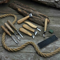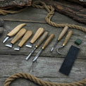 This 8-piece spoon carving tool set is a complete solution for carvers working across a wide range of techniques — from rough shaping and hollowing to detailed relief work and finishing.