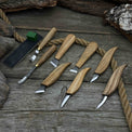 Includes six carving knives, one hook knife, and one gouge—ideal for shaping, hollowing, sculpting, and detailing across a wide range of carving styles.