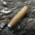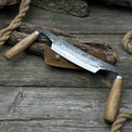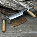 This hand-forged Curved Drawknife (Push/Pull), 14.5 cm (5.7 inches) is designed for woodworkers who need efficient control while shaping, smoothing, and carving large wooden surfaces. Ideal for push or pull strokes, its wide 14.5 cm (5.7 inch) blade excels at hollowing, debarking, and refining curves. Whether you're working on chair legs, spoons, or sculptural forms, this tool delivers the power and precision required for demanding tasks.