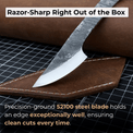 Enhances your leatherworking experience with consistently sharp performance, ensuring clean cuts and fine detail in every project. The polished, smooth steel blade easily cuts through various types of leather, reducing effort and improving the quality and productivity of your work.
