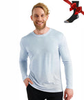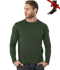 100% Merino Wool Base Layer Men Merino Wool Long Sleeve 240G Midweight Thermal Underwear Wicking Breathable Top + Hiking Socks