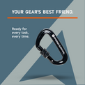 A strong, lightweight carabiner built for gear organization and secure connections in survival and outdoor settings. Perfect for attaching essentials to backpacks, setting up shelters, and more—but without the bulk or weight.