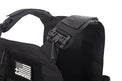 It has front and back pouches that allow for 10x12 Redemption Tactical ballistic plate to be put inside that is up to one inch thick. The pouch has a nice closure to keep the plate from falling out.