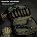 Cushioned Pistol Compartments for Safe Transport: Your firearms stay protected inside padded pistol compartments that prevent scratches, dings, and impact during transport. Whether carrying one or multiple handguns, this case ensures your firearms remain secure and ready for action. It’s an essential feature for anyone moving pistols to and from the range or on duty.