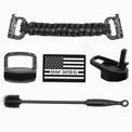 Each pack includes a Straw lid, wide mouth lid, cleaning brush, paracord handle, and a morale patch. Accessory packs are compatible with both 64oz and 32oz Battle Bottles.
