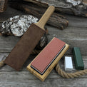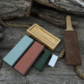 This Universal Sharpening Kit is a complete solution for keeping your knives, chisels, and carving tools in peak condition. Whether you're restoring a dull edge or applying the final polish, this all-in-one set offers everything you need for sharpening, honing, and finishing. It includes two double-sided sharpening stones with a wide grit range, a compact finishing stone, a leather strop, polishing compound, and a durable wooden stand with a non-slip base—ideal for both professionals and hobbyists.